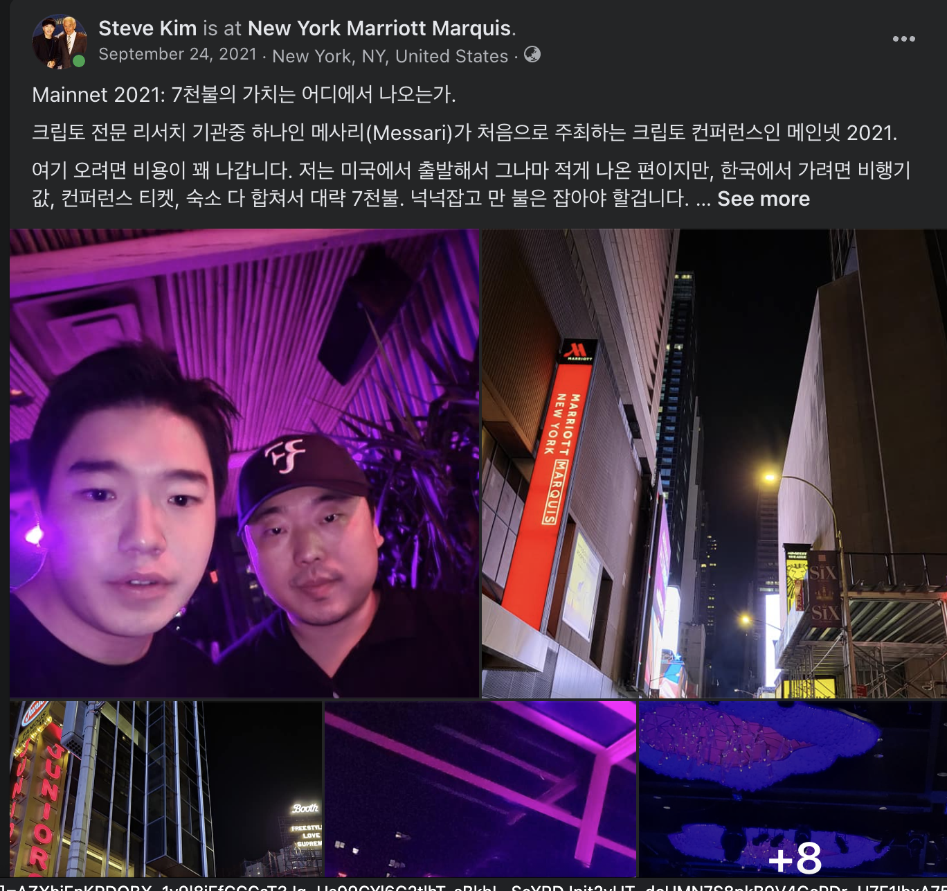 당시에 우리는 네 명 뿐이었어서, 메인넷 행사는 나 혼자 참여했는데 솔직히 많이 외롭기도 했었다. 보통은 팀 단위로 오는데 나만 혼자였던 거 같아서. 하지만 생각보다 많은 성과를 냈던 시기이기도 했어서 지금도 생각해보면 좋은 추억이다. 이렇게 글을 쓰는 와중에도 뉴욕이 그리워지는 것을 보면 말이다.